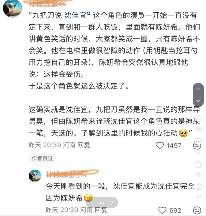 台词铿锵有力,既演出了角色的清醒,也让观众看到了离婚后独立坚韧的陈妍希。