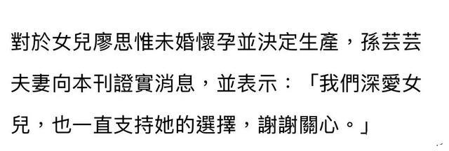 甚至孙芸芸和丈夫廖镇汉还亲自回应了这条消息,他们对外表示:我们深爱女儿,也一直支持她的选择,谢谢关心。
